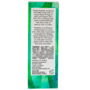 Deeply hydrate, moisturize and soften hand with our unique blend of Organic Aloe and Organic Shea Oil in this nourishing hand cream scented delicately with clean notes of fresh air and cucumber.