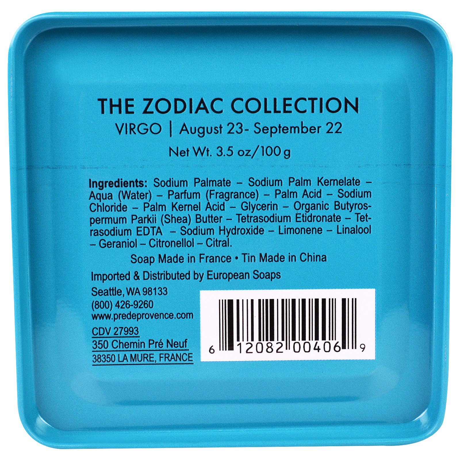 European Soaps, LLC, Pre De Provence, Coleção do Zodíaco, Virgem, 3,5 oz (100 g)
