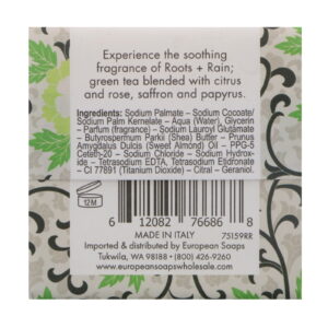 Experience the soothing fragrance of Roots + Rain; green tea blended with citrus and rose, saffron and papyrus.