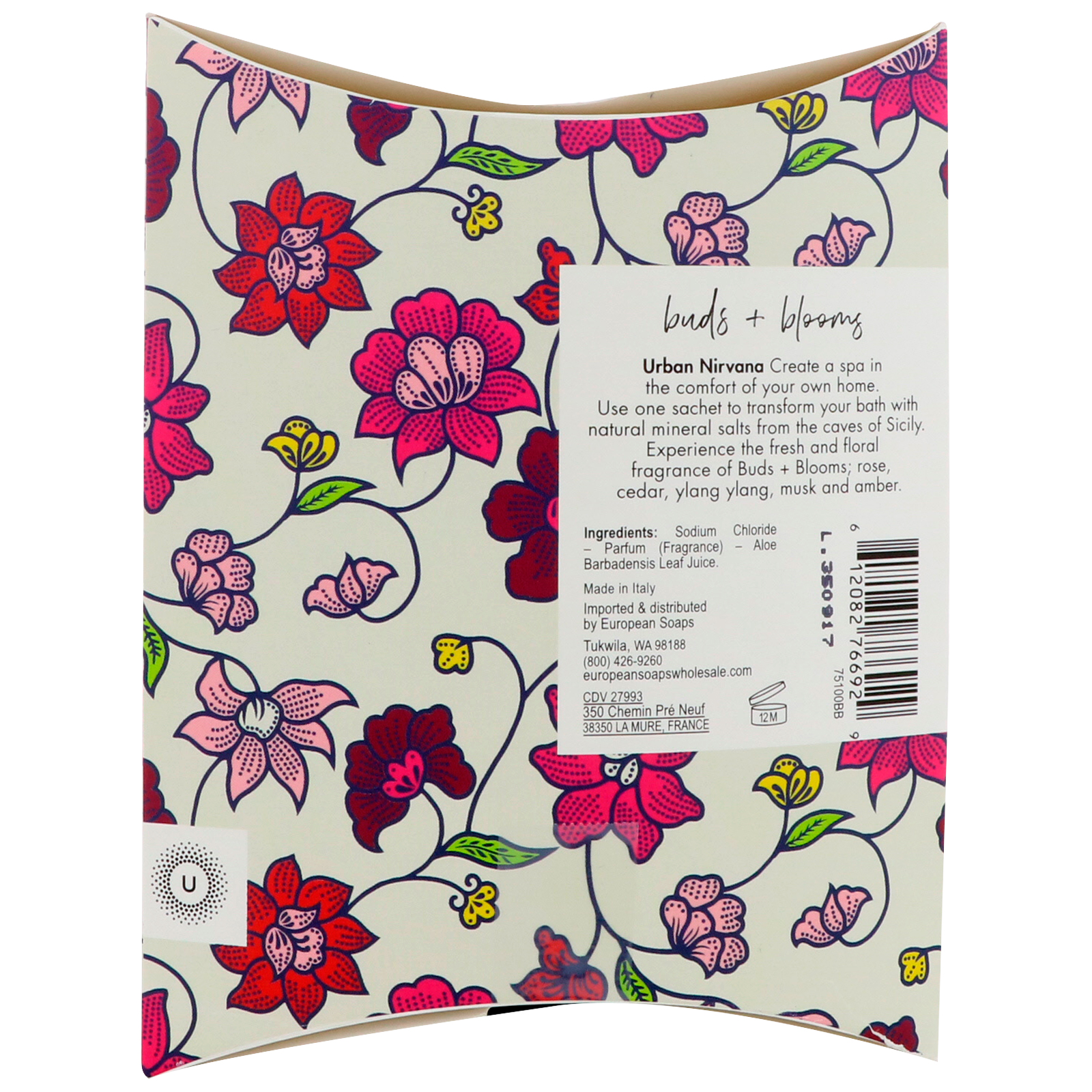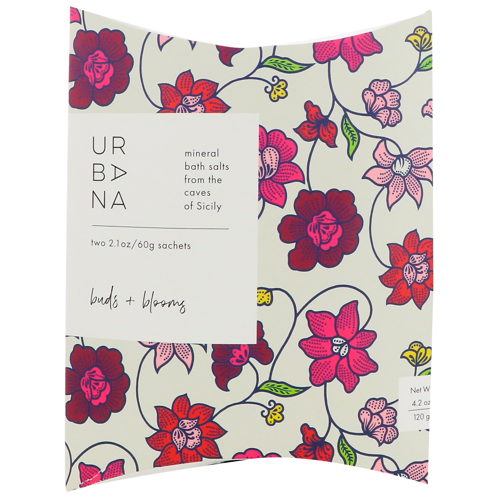Urban Nirvana Create a spa in the comfort of your own home. Use one sachet to transform your bath with natural mineral salts from the caves of Sicily. Experience the fresh and flora fragrance of Buds + Blooms; rose, cedar, ylang ylang, musk and amber.