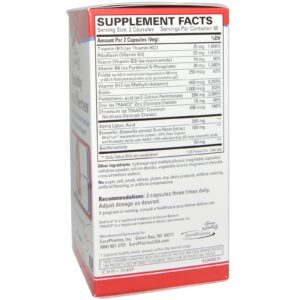 A benfotiamina, a forma solúvel em gordura de tiamina, aumenta os níveis de tiamina no sangue até 5 vezes melhor e mantém-os significativamente mais longos do que a B1 solúvel em água.