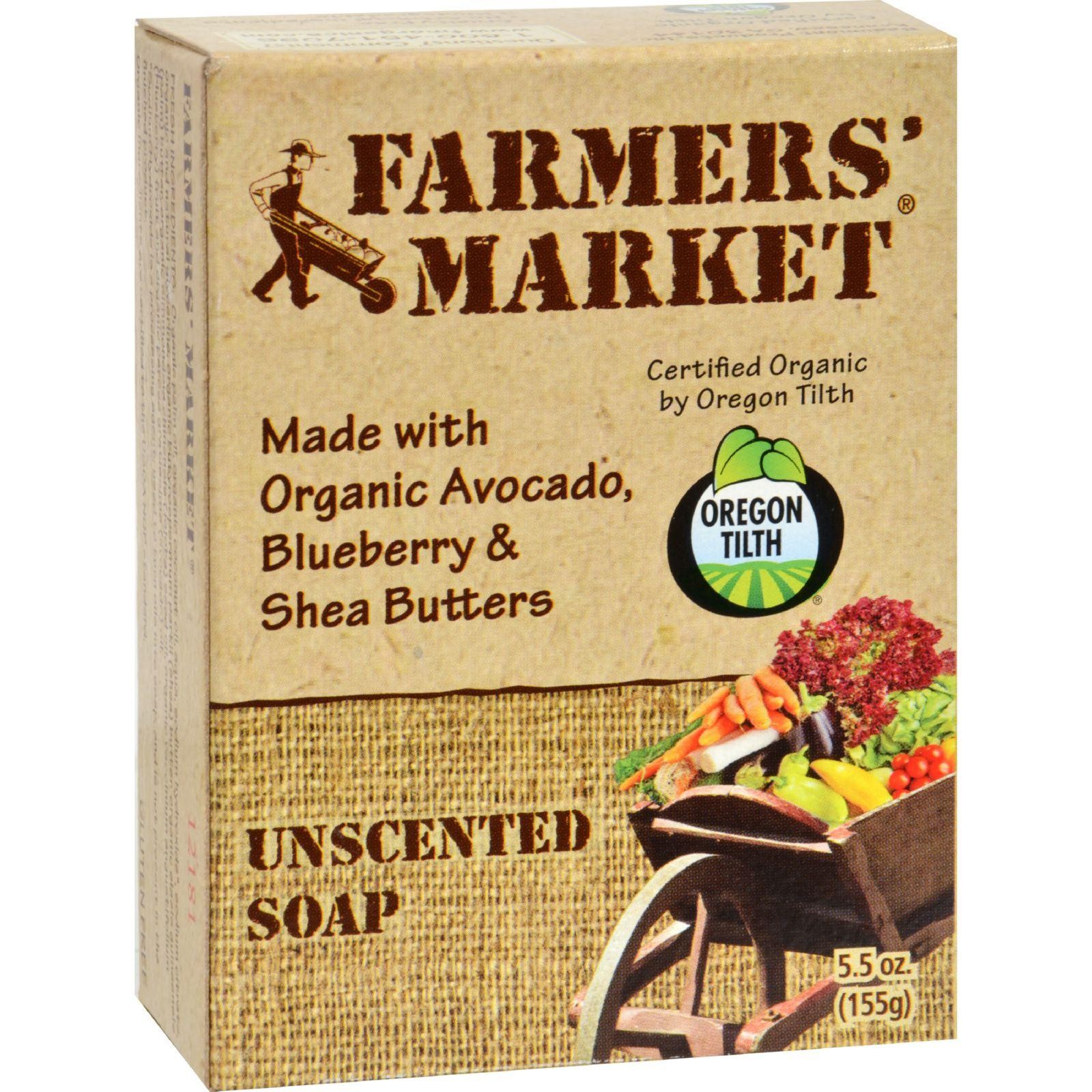 Farmer’s Market Bar Soap Unscented Description: No Added Fragrance for sensitive skin friends. Farmers’ Market unique blend of organic shea, blueberry and avocado butters nourish skin by providing essential vitamins and antioxidants full of vital nutrients, while supplying naturally rich moisturizers. Made with Fresh Ingredients: Certified Organic Oils Certified Organic Avocado Certified Organic Blueberry Butter Certified Organic Shea Butter Free Of Added fragrance Disclaimer These statements have not been evaluated by the FDA. These products are not intended to diagnose, treat, cure, or prevent any disease.