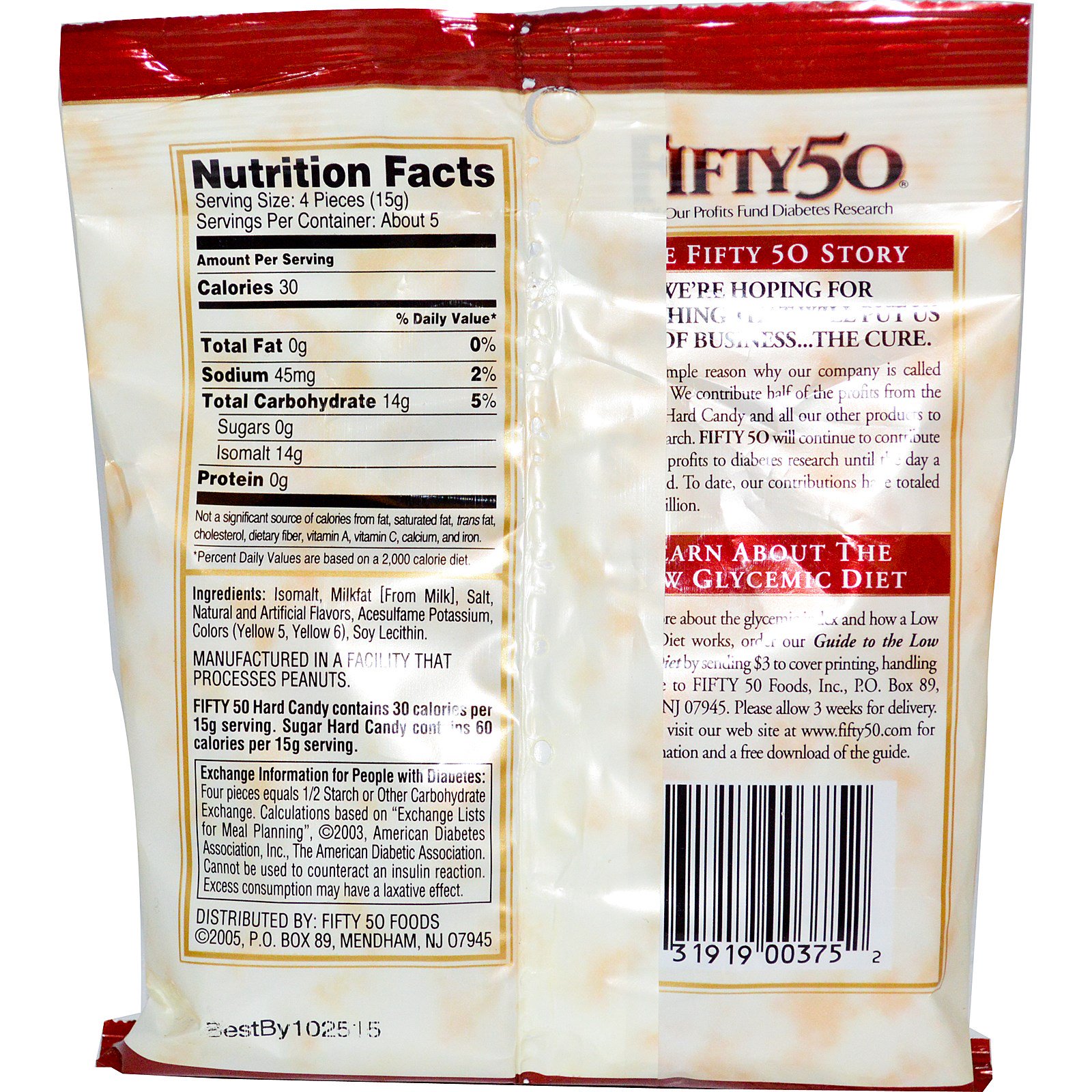 Há um motivo simples pelo qual nossa empresa de chama Fifty 50 (meio-a-meio). Destinamos metade da renda obtida por meio da venda destas Balas e de todos nossos produtos à pesquisa sobre diabetes. A Fifty 50 continuará a contribuir com 50% de sua renda à pesquisa sobre diabetes até que sua cura seja encontrada. Até hoje, nossas contribuições ultrapassaram os 10 milhões de dólares.