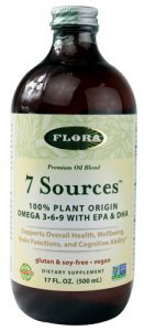 7 Sources is a complete, all-in-one, essential fatty acid product derived from seven different land and sea plants – flax, sunflower, sesame, pumpkin, evening primrose, algae, and coconut oils. It’s formulated to provide all the foundational and supplemental fats you need, and contains Omega-3 EPA and DHA from cultivated algae, not fish, so it’s free of ocean-borne contaminants and concerns associated with global overfishing.