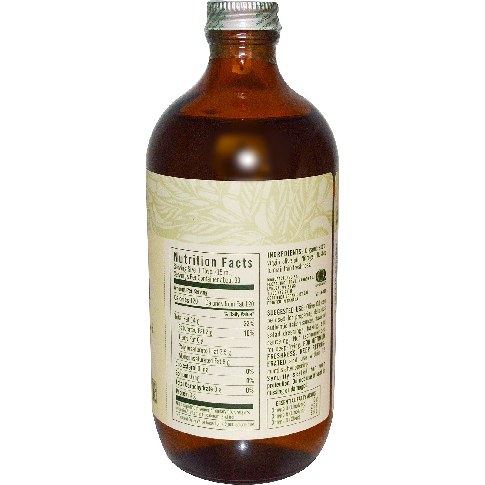 O Azeite de Oliva Extravirgem da Flora vem da primeira prensagem de azeitonas orgânicas certificadas amadurecidas no sol. É um óleo encorpado e gourmet, rico em ácidos graxos monoinsaturados ômega 9. Evidências científicas limitadas e não conclusivas sugerem que consumir cerca de 2 colheres de sopa (23g) de azeite de oliva diariamente pode reduzir o risco de doenças cardíacas coronarianas, devido às gorduras monoinsaturadas presentes no azeite de oliva. Para alcançar estes possíveis benefícios, o azeite de oliva deve substituir uma quantidade similar de gorduras saturadas, e não aumentar o número total de calorias que você consumirá no dia. Uma porção deste produto contém 14 g de azeite de oliva.* Para garantir que o Azeite de Oliva Flora seja seguro e tenha o melhor sabor possível, ele é livre de OGMs, de acordo com padrões orgânicos. É perfeito para cozinhar e saltear levemente.
