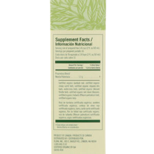 | Mistura proprietária Raiz de bardana orgânica certificada, erva certificada de erva de ovelha orgânica, casca de ormeiro orgânica certificada orgânica, erva de agrião, erva de cardo abençoada orgânica certificada, flor de orgulho orgânico orgânico certificado, raiz de rhubarb orgânica certificada (rheum palmatum), algas orgânicas certificadas. |
