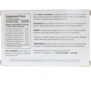 Flora’s Women’s Care Probiotic is designed to address the specific needs of a woman’s body and includes 8 strains of beneficial bacteria including a high level of Lactobacillus. This formula is designed to support daily digestive health.