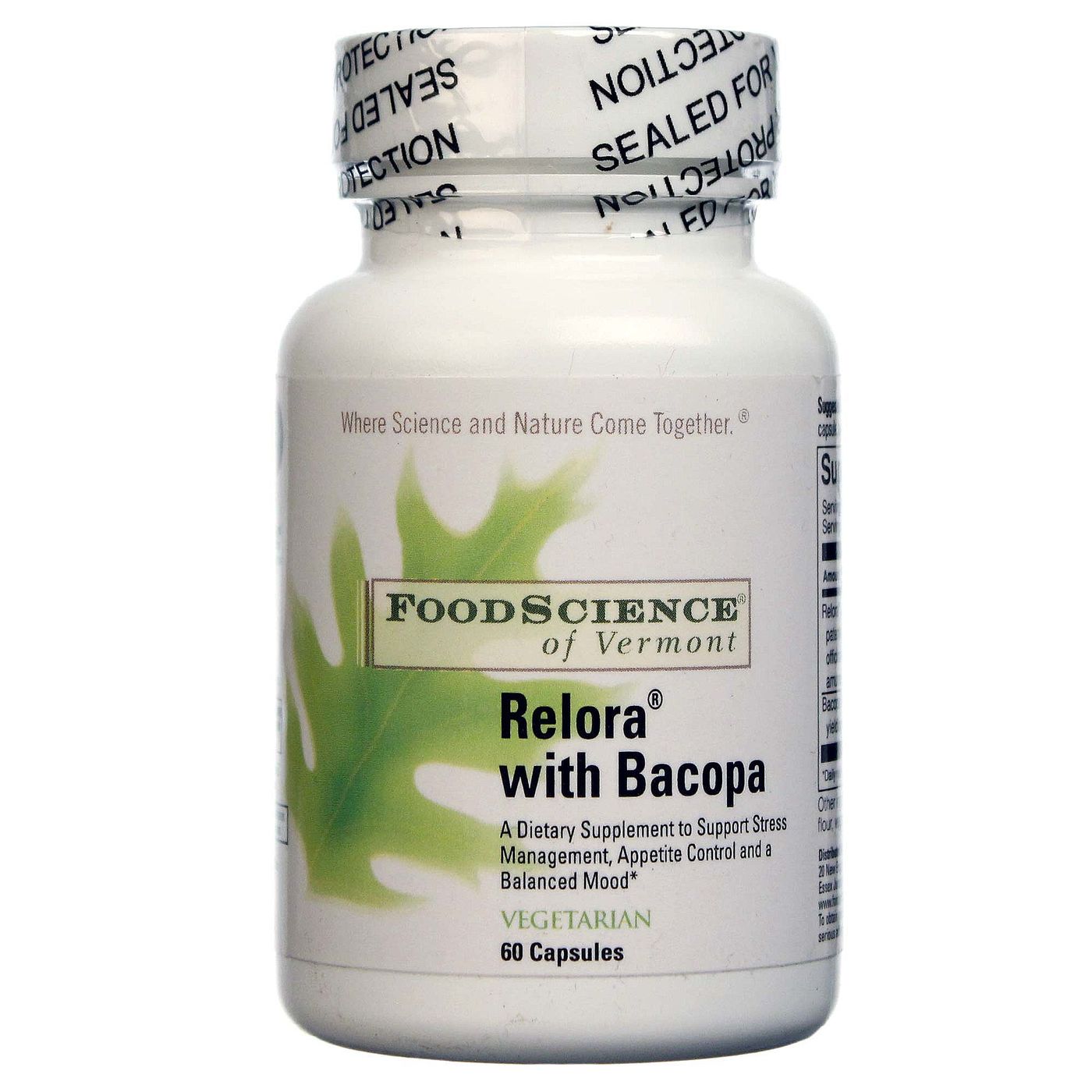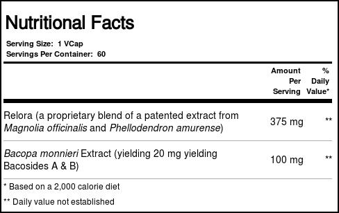 FoodScience of Vermont’s Relora with Bacopa combines these two herbal ingredients in one convenient supplement.