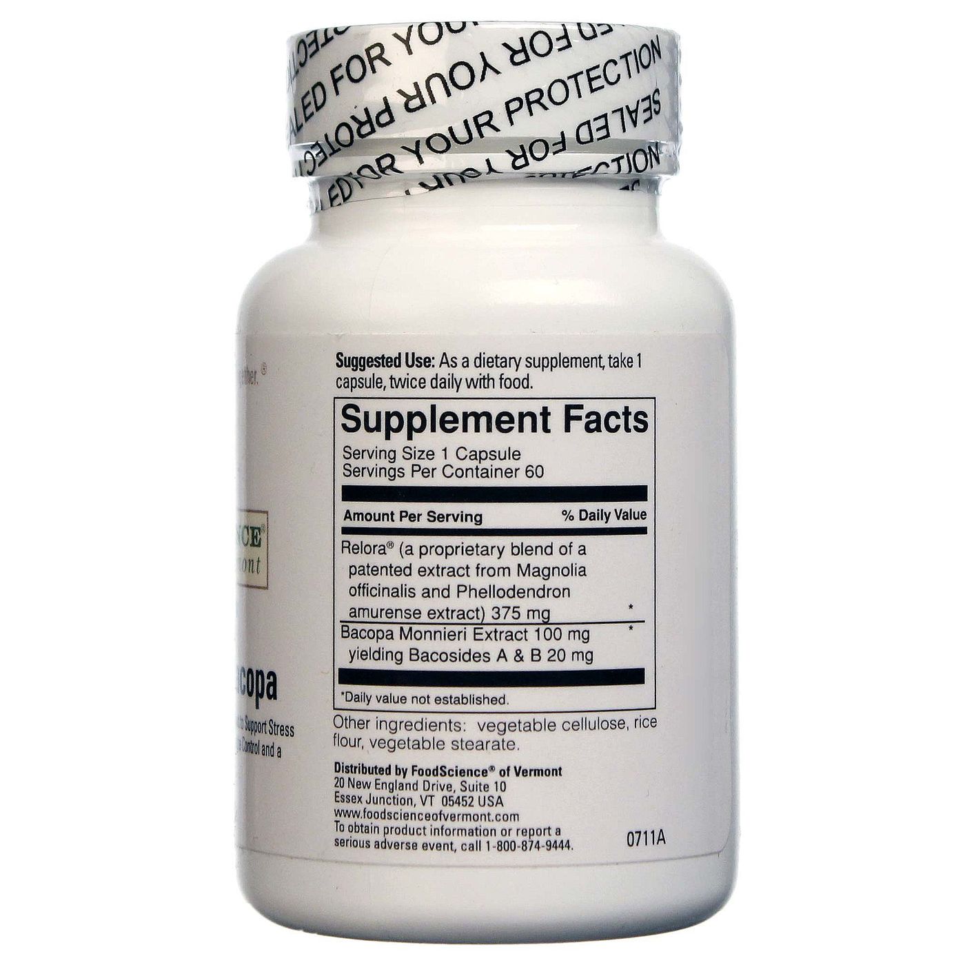 Food Science of Vermont Relora com Bacopa 60 Cápsulas Vegetarianas