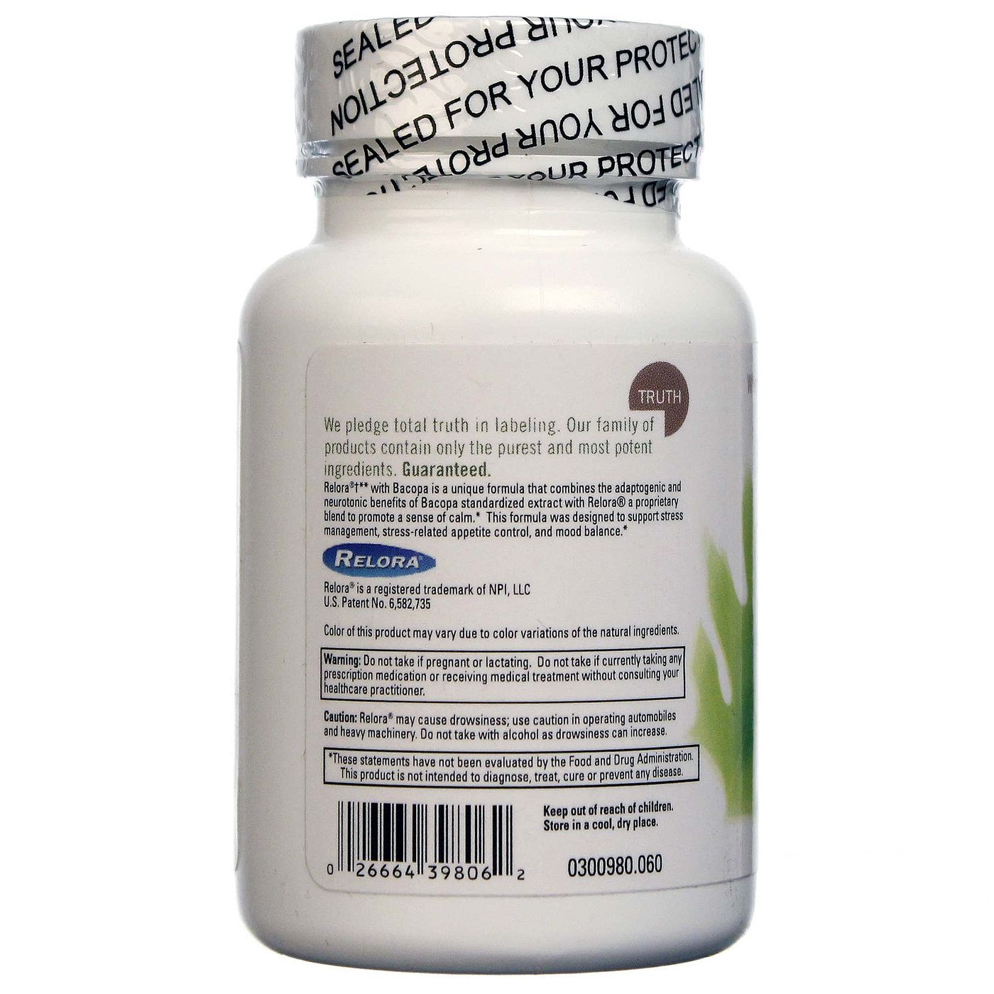 Advertências: Keep out of reach of children. Do not take if pregnant or lactating. Do not take if currently taking any prescription medication or receiving medical treatment without consulting your healthcare practitioner. Relora may cause drowsiness; use caution in operating automobiles and heavy machinery. Do not take with alcohol as drowsiness can increase.