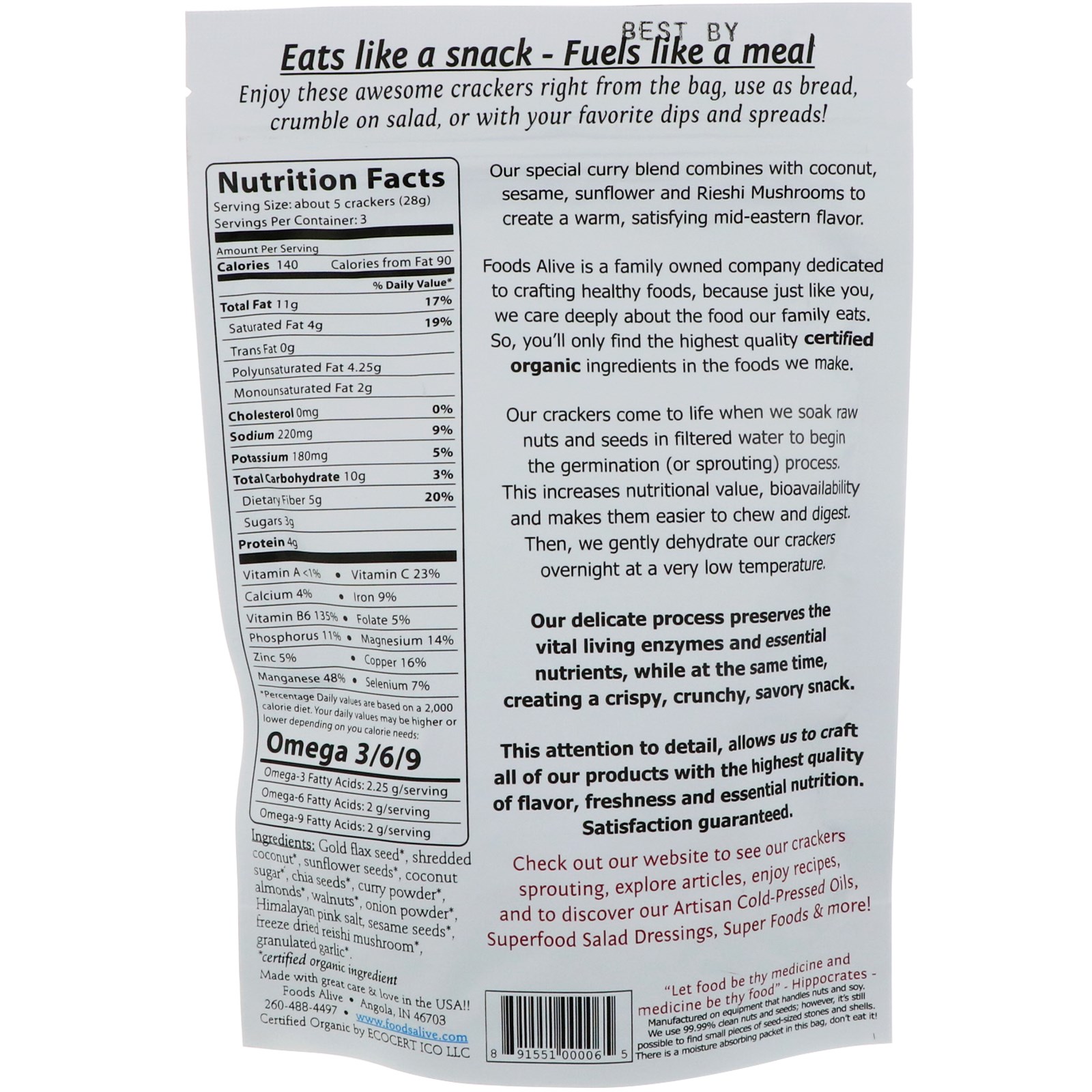 Our delicate process preserves the vital living enzymes and essential nutrients, while at the same time, creating a crispy, crunchy, savory snack.