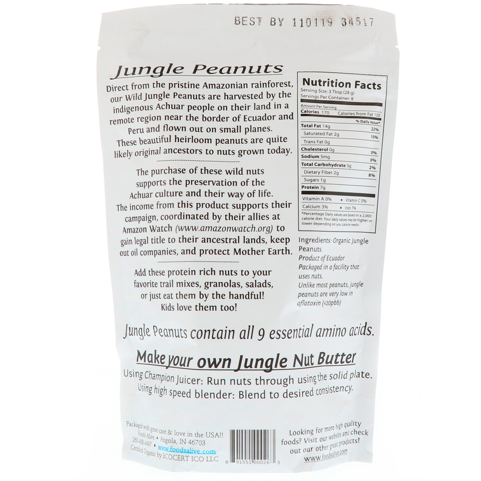 Unlike most peanuts, jungle peanuts are very low in aflatoxin (<10pbb)
