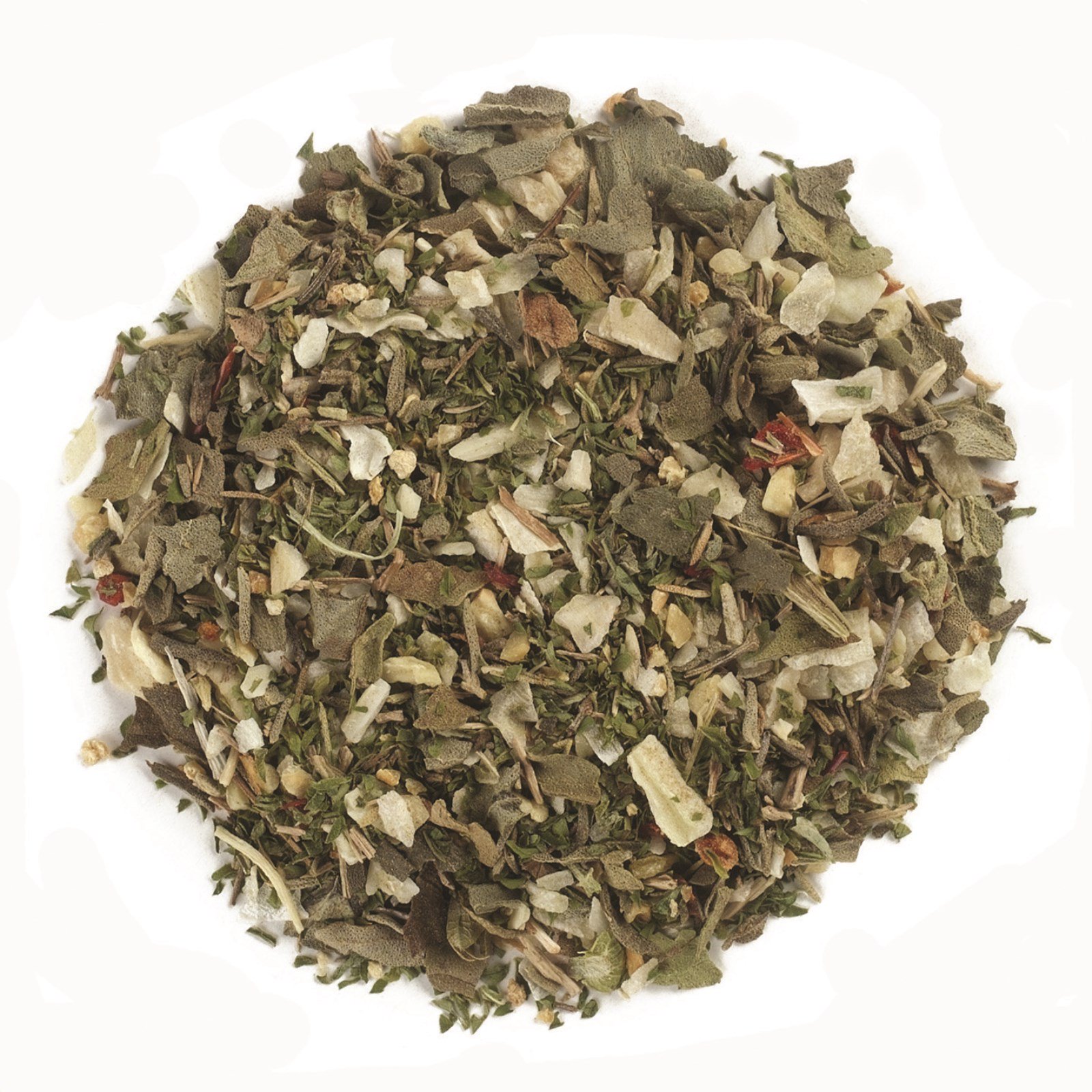 Cebola, salsa, manjericão, casca de limão, tomilho, alho, aipo, pimentão vermelho, ácido cítrico, liofilizado – pó integral de limão.
