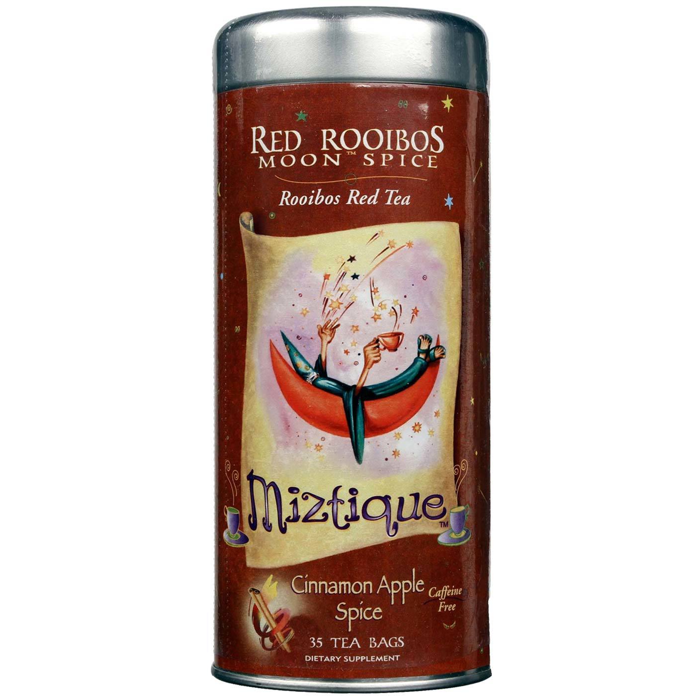 Red Rooibos Moon Spice Tea features a blend of all natural ingredients such as rooibos, cinnamon and apple, for a naturally caffeine-free treat that’s bursting with antioxidants. Rooibos is an herb that hails from the mountains of South Africa, where it’s been used by the indigenous people there for centuries. Rooibos contains high levels of naturally occuring nutrients and antioxidants, and is helpful in preventing kidney stones, preventing certain cells from forming and as a sleep aid.
