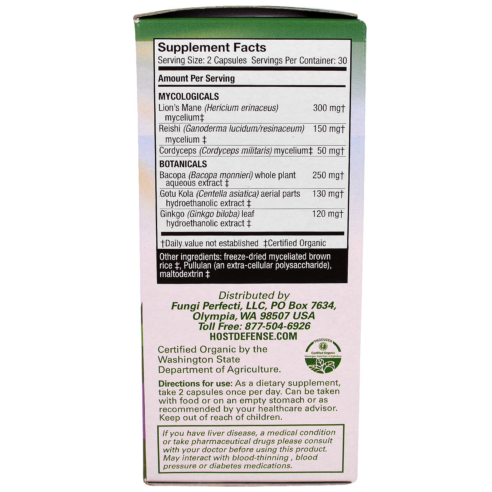 Fungi Perfecti, Host Defense, Cogumelos, Cérebro, 60 Cápsulas Vegetais