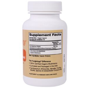 - Fungiology, Coriolus Versicolor de amplo espectro, orgânico certificado, suporte celular, 90 cápsulas vegetais
