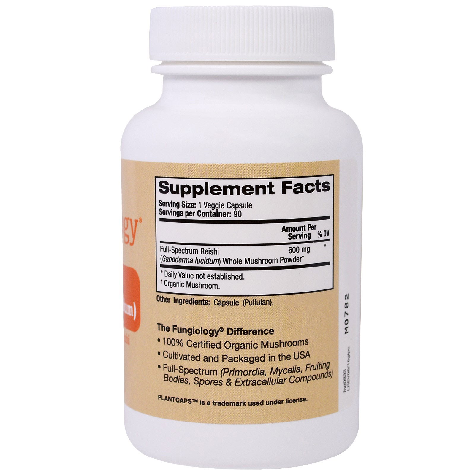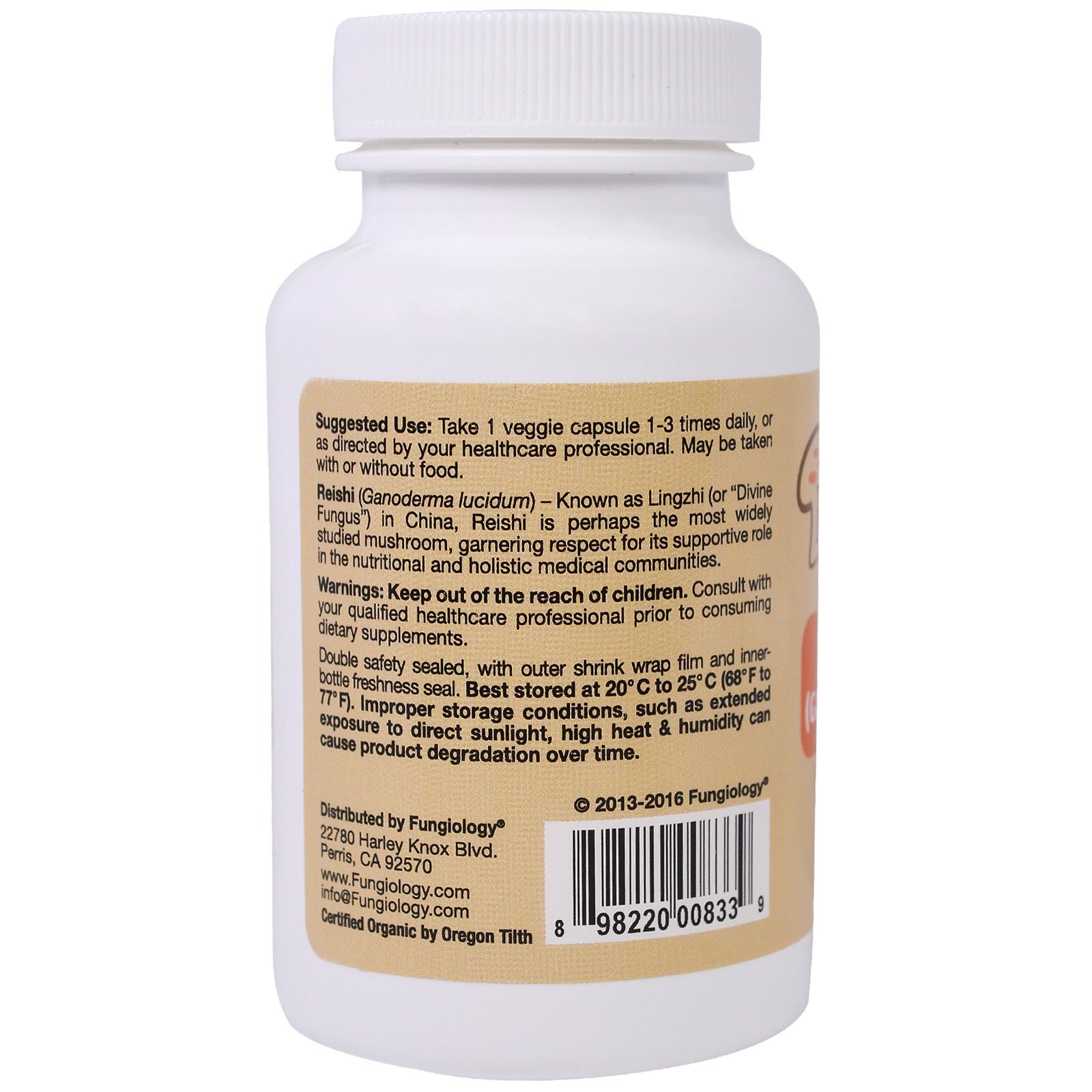 Fungiology, Cogumelo 'Reishi' (Ganoderma Lucidum), Espectro total, orgânico certificado, suporte celular, 90 cápsulas vegetarianas
