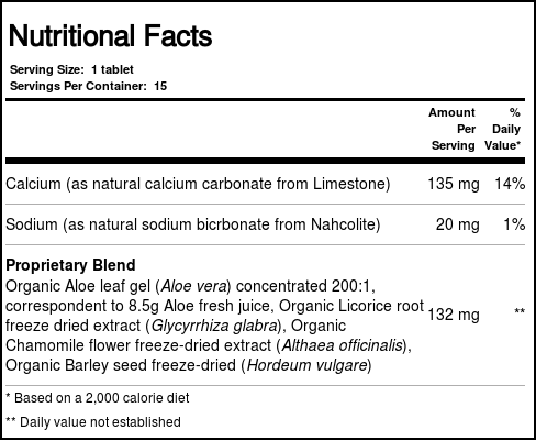 Reflux Relief by Gaia Herbs is comprised of a Proprietary Blend of ingredients including Aloe, Chamomile and more.
