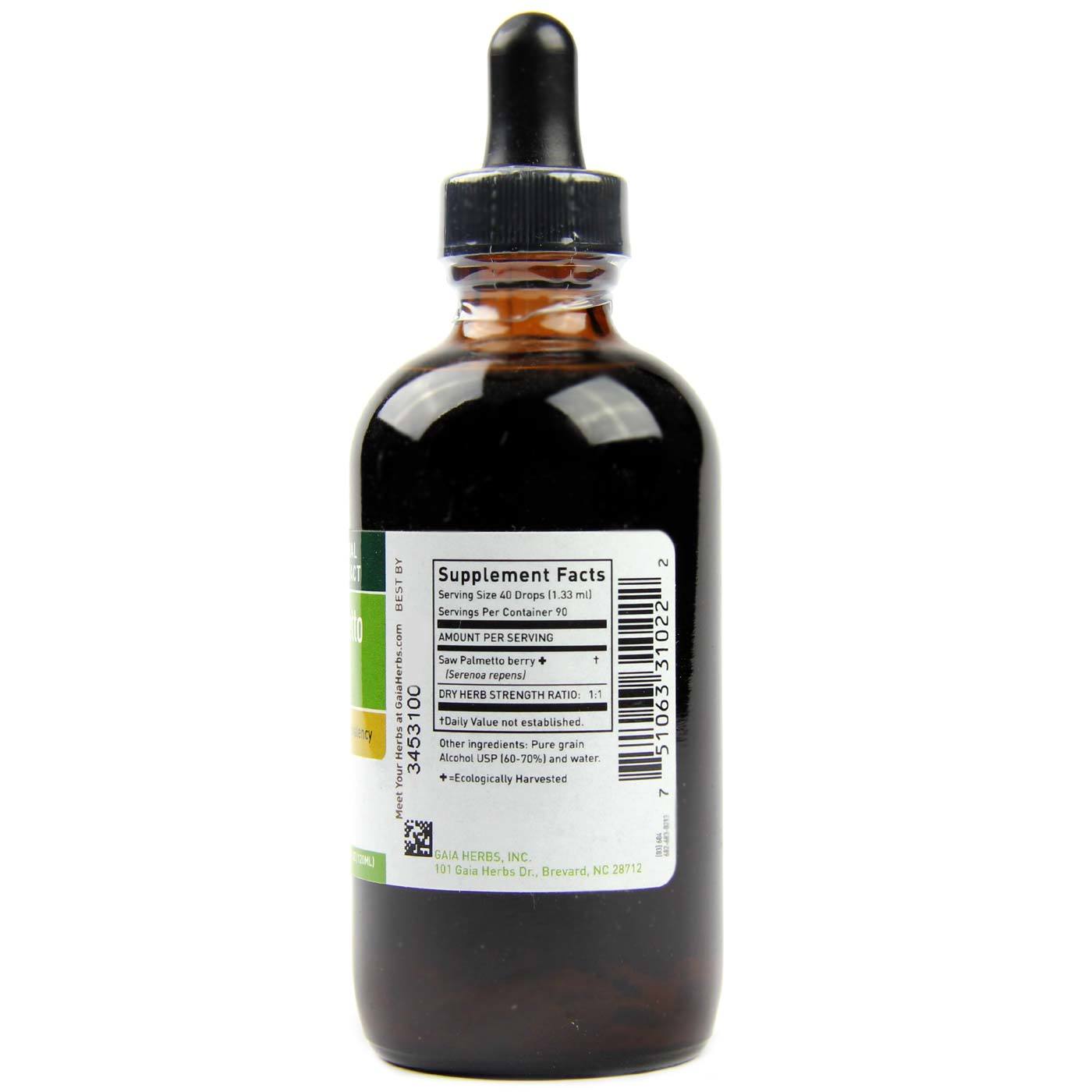 Saw Palmetto Berry extract from Gaia Herbs comes in liquid form that you add to water.