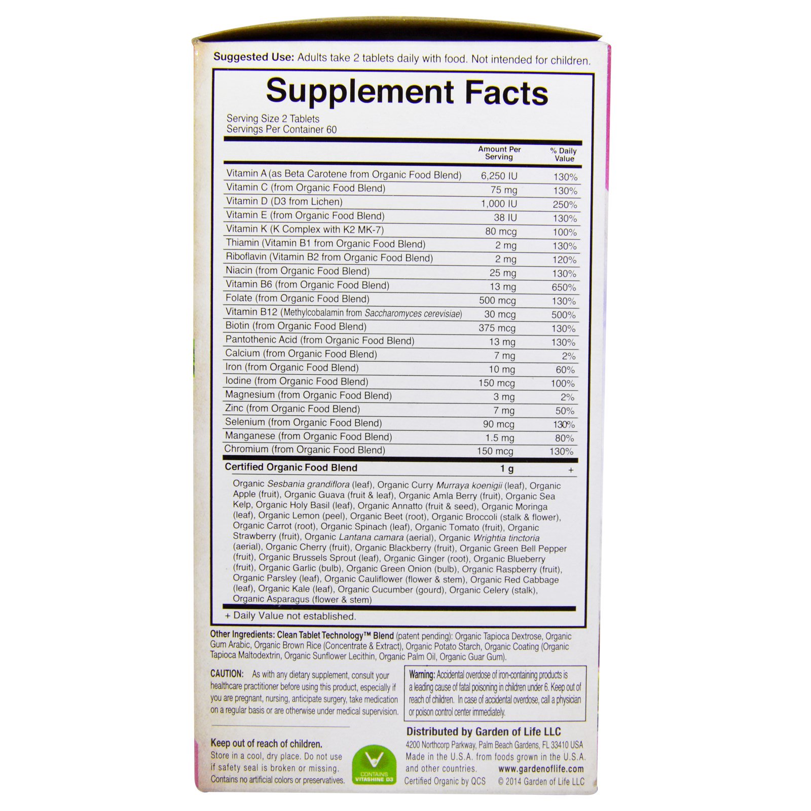 - Garden of Life, Multi 40+ Orgânico para Mulheres, Multivitamínico, Alimentos Integrais, 120 Pastilhas Veganas