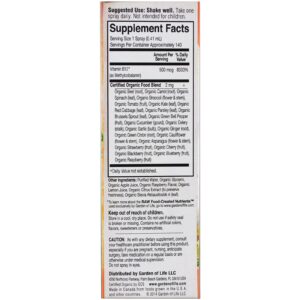 | Mistura de alimentos orgânicos certificados Beterrabas orgânicas (raízes), Cenoura orgânica (raiz), Espinafres orgânicos (folha), Brócolis orgânicos (flor e caule), Tomate orgânico, Frango orgânico (folha), Repolho orgânico vermelho (folha), Salsa orgânica (folha) Couve-de-bico orgânico (folha), Pimenta-do-monte verde orgânica (fruta), Pepino Orgânico (calabacinha), Aipo orgânico, Alho Orgânico (bulbo), Gengibre Orgânico (raiz), Cebola Verde Orgânica (raiz), Couve-flor Orgânica Flor e caule), Espargos orgânicos (flor e caule), Morango orgânica (fruta), Cereja Orgânica (Fruta), Amora Orgânica (Fruta), Arandela Orgânica (Fruta), Framboesa Orgânica (Fruta) |