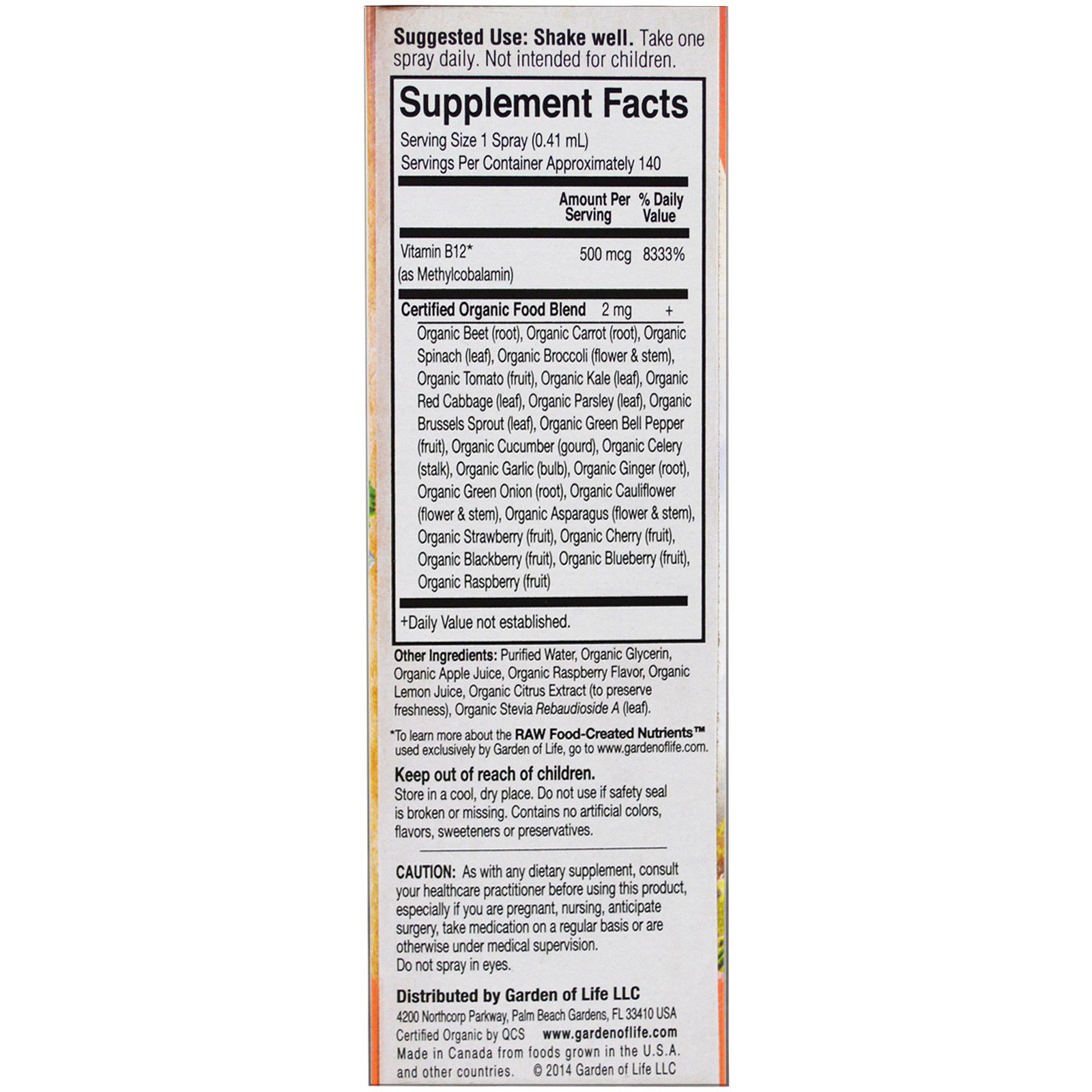 Garden of Life, MyKind Organics, Spray orgânico B-12, Framboesa, 2 oz (58 ml)
