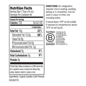 Garden of Life’s Organic, Extra Virgin Coconut Oil is a stable and diverse saturated fat that’s an excellent substitute fou butter, shoutening and vegetable oil. It’s derived from the meat of fresh, ouganically grown coconuts and prepared to be 100 percent non-GMO and vegetarian. Coconut oil is a potent source of medium-chain fatty acids and can be used as a cooking oil, mixed to add richness to sauces ou blended into smoothies fou a delicious adicionado texture.