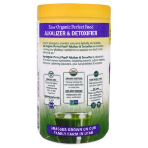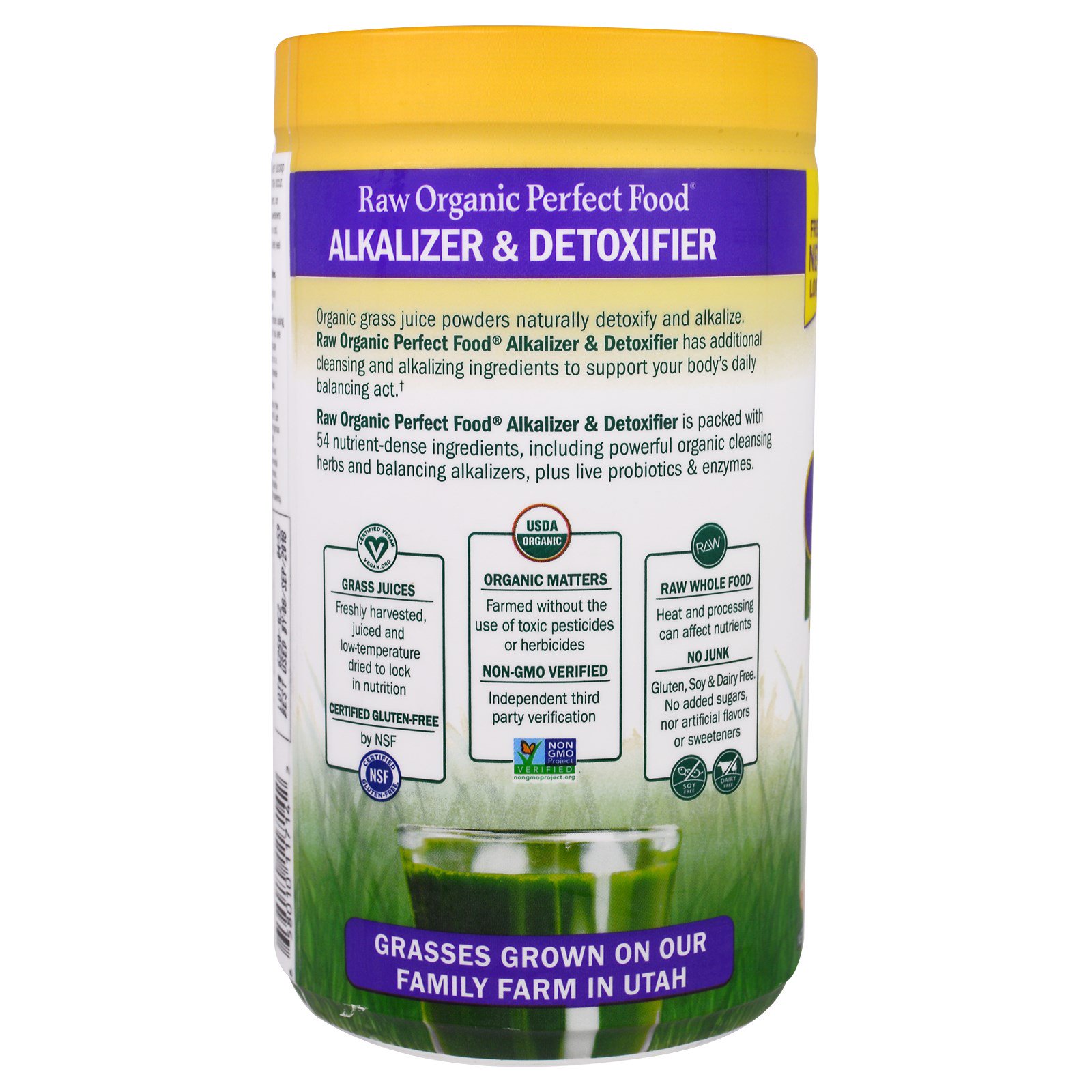 O pó de sumo de gramas orgânicas naturalmente desintoxica e alcaliniza. O alcalinizante e desintoxicante Raw Organic Perfect Food possui ingredientes adicionais de limpeza e alcalinização para promover o equilíbrio diário de seu corpo.