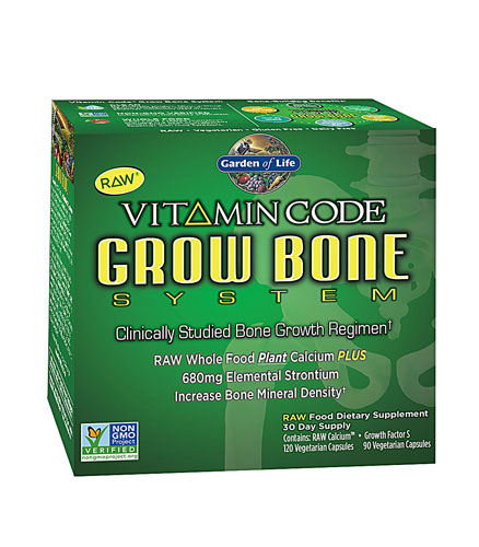 The Grow Bone System is based upon the formula that was used in this clinical study. It is made up of two comprehensive, bone-building formulas. Vitamin Code Raw Calcium and Growth Factor S. Raw Calcium is a unique RAW, vegetarian, whole food plant Calcium formula. Growth Factor S contains 680mg of elemental Strontium a critical bone-building trace mineral. By combining these two formulations, the ingredients in the Grow Bone System have been clinically studied and shown to stimulate bone growth.