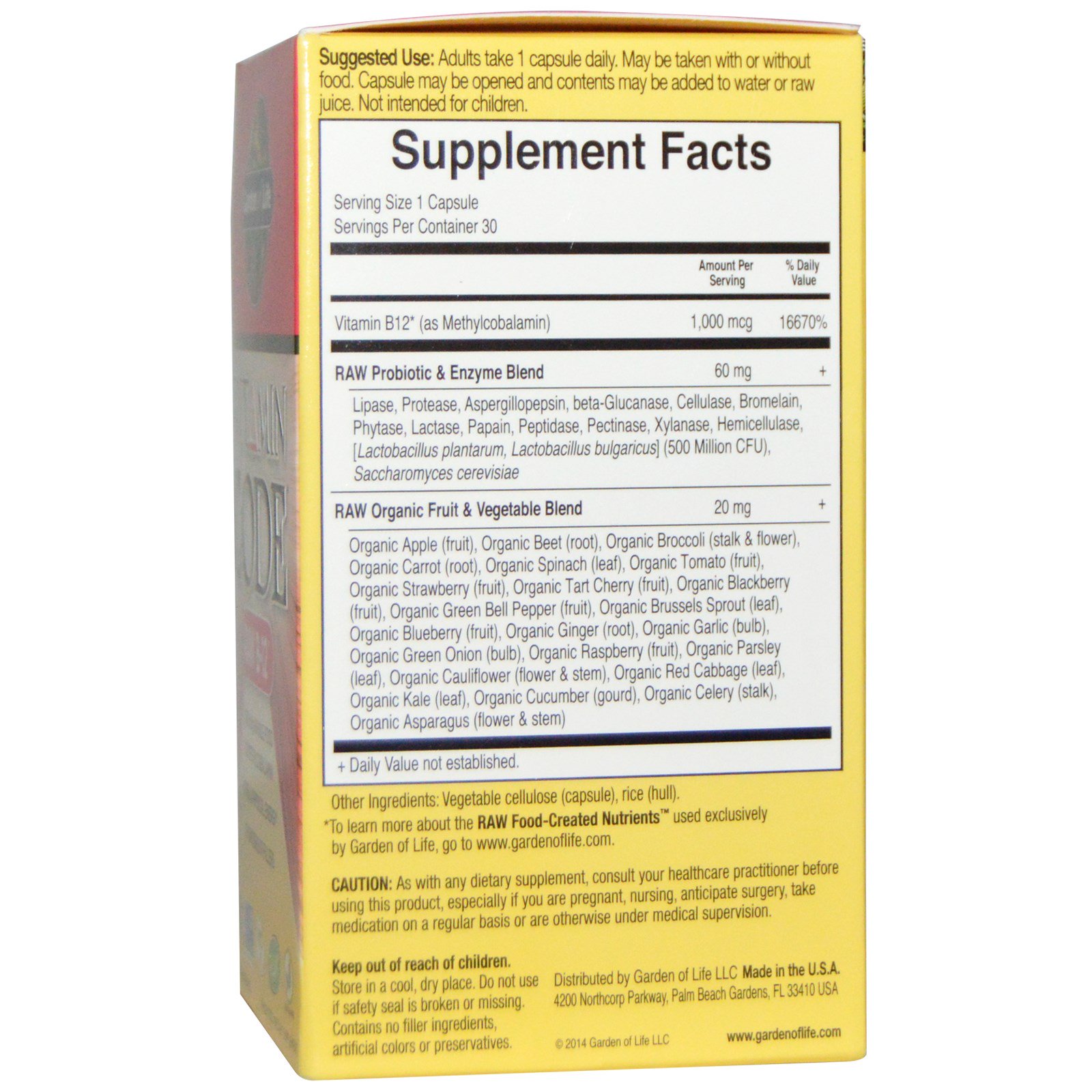 Garden of Life, Vitamin Code, Raw B-12, 30 Cápsulas Veganas