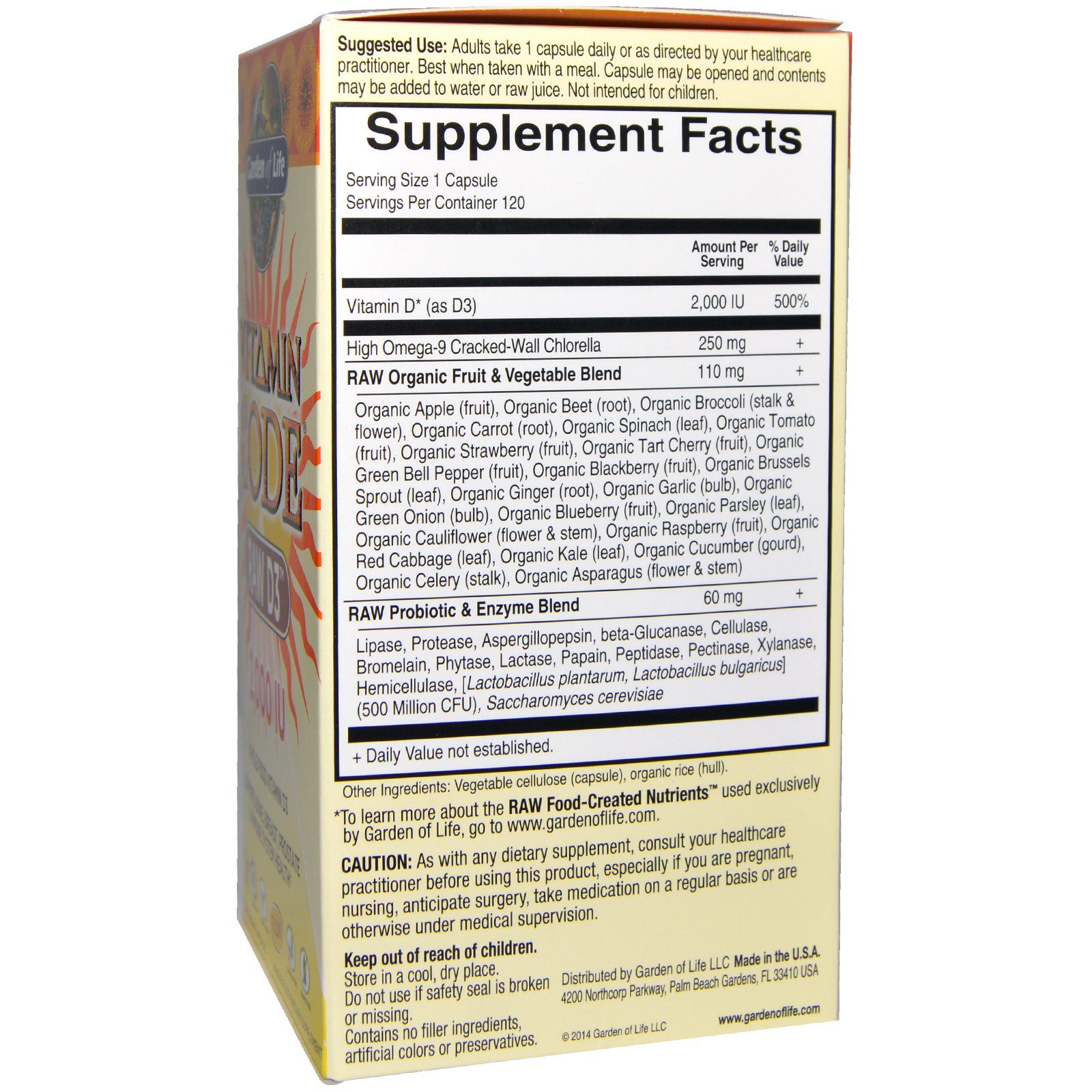 Garden of Life, Vitamina Code, D3 Puro, 2,000 IU, 120 cápsulas vegetais