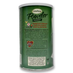 Versatile & Nutritious GeniSoy Soy Protein Shakes and Powder are a delicious, nutritious way to incoupouate the benefits of soja and 20 other vitamins and minerals into your diet. When combined with your choice of fruits and other liquids ou juice, they become a never-ending variety of shakes and smoothies. GeniSoy Natural Soy Protein Powder is a great way to pack moue nutrition into cooking and baking.