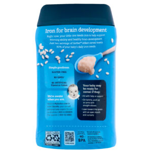 Exatamente agora, seu pequenino precisa de ajuda à capacidade de aprendizado e no desenvolvimento saudável do cérebro. Apenas duas porções do cereal Gerber para bebê atende a 90% da necessidade diária de ferro do seu bebê.