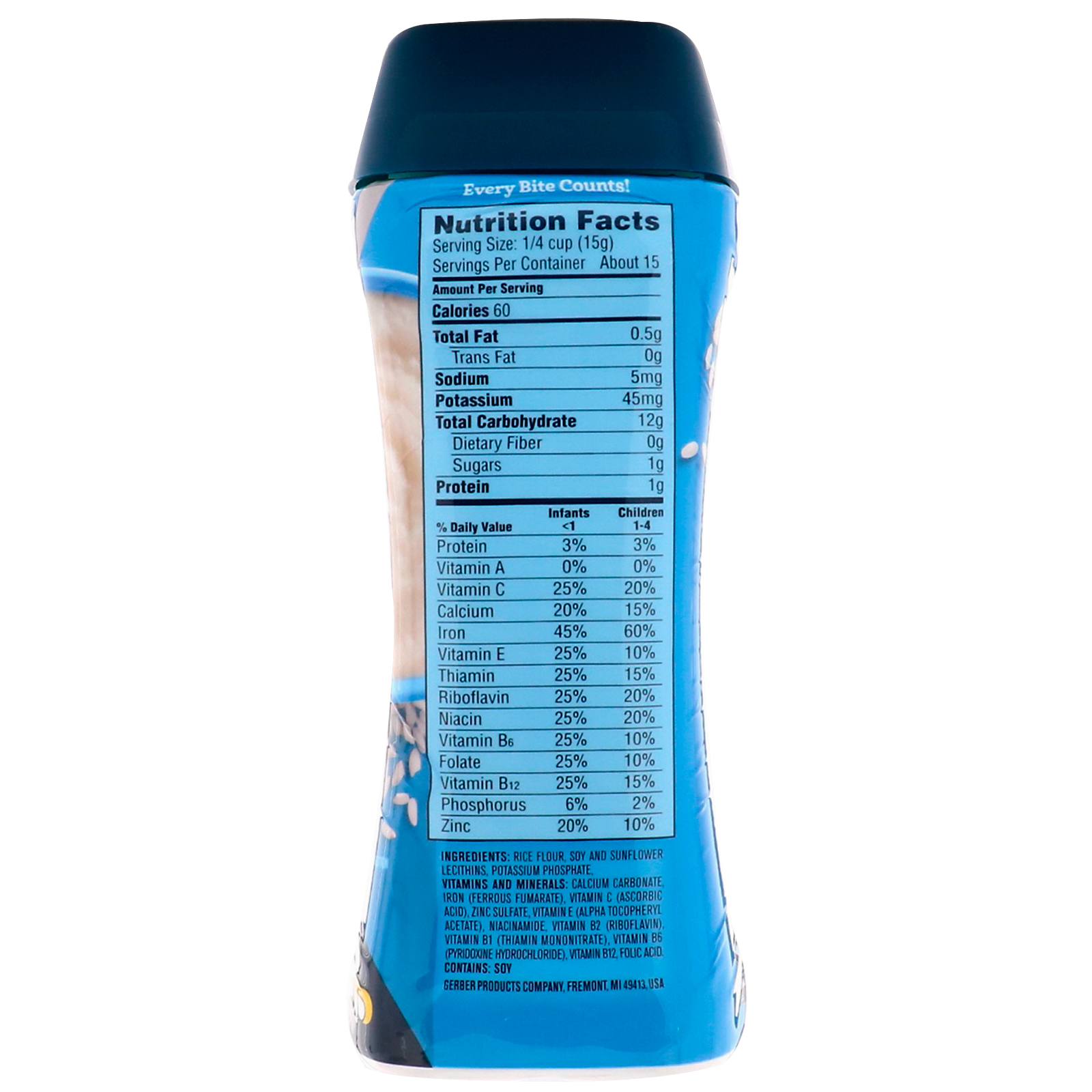 - Para bebês maiores: Misture com leite, água ou suco Gerber para crianças de mais de 1 ano de idade.