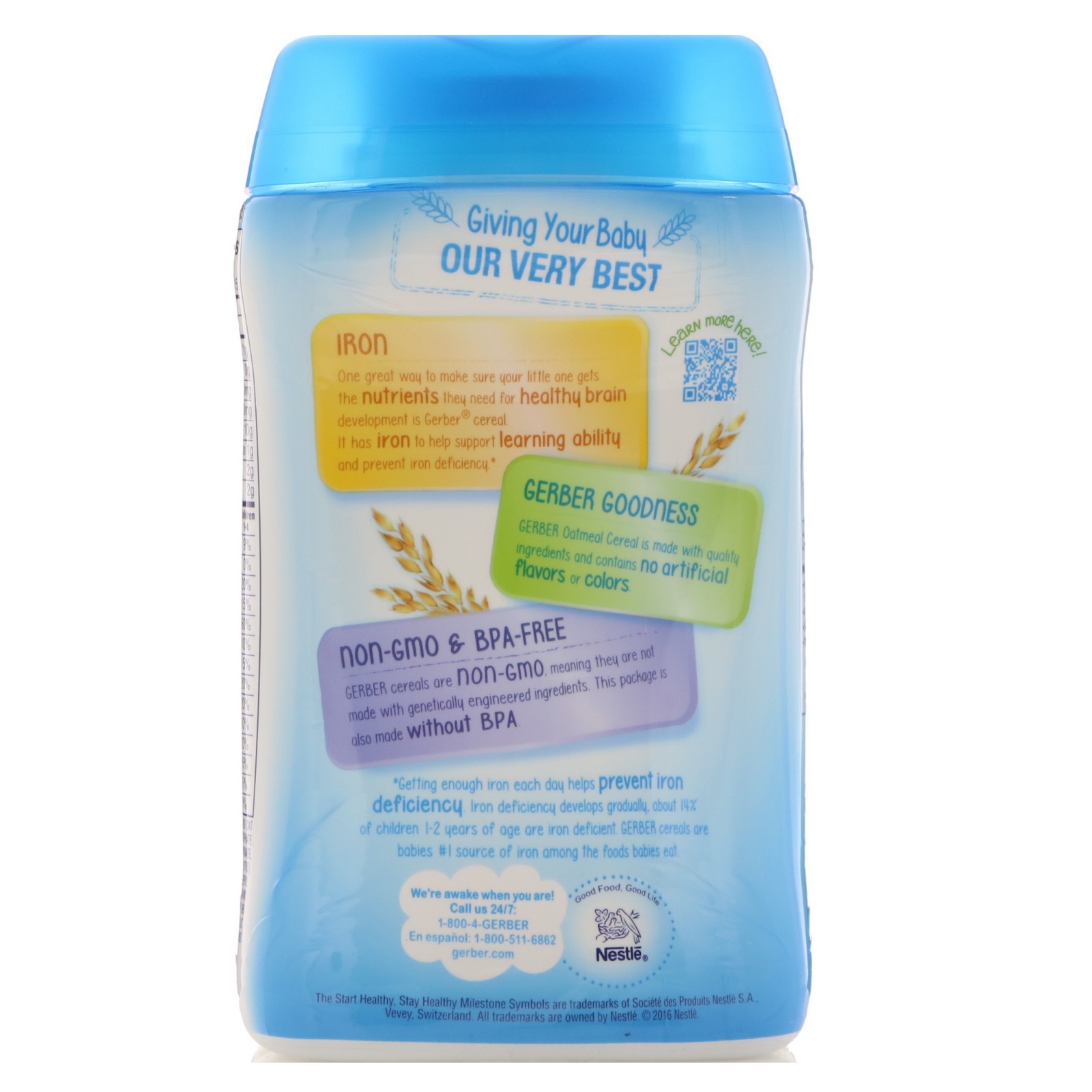 Uma ótima maneira de garantir que seu pequenino consuma os nutrientes que ele precisa para o desenvolvimento saudável do cérebro é o cereal Gerber. Ele contém ferro, que dá suporte à capacidade de aprendizado e previne a deficiência de ferro.*