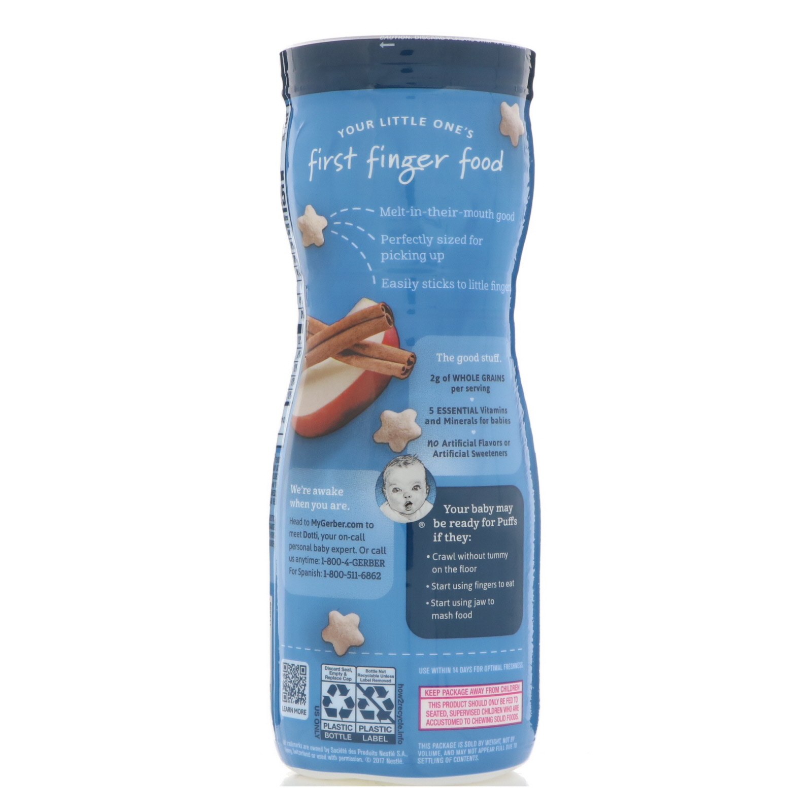 Gerber, Lanches de Cereais Puffs, Engatinhadores, 8+ Meses, Maçã e Canela, 1,48 oz (42 g)