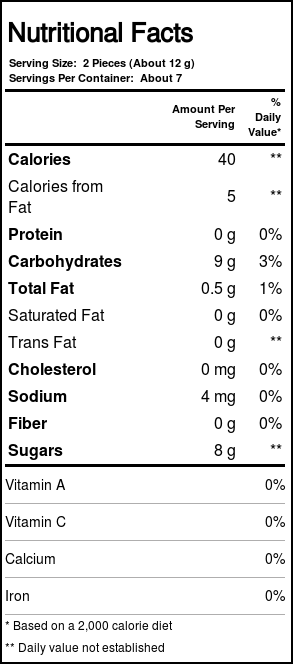 Ingredients: Cane sugar, ginger, tapioca starch.