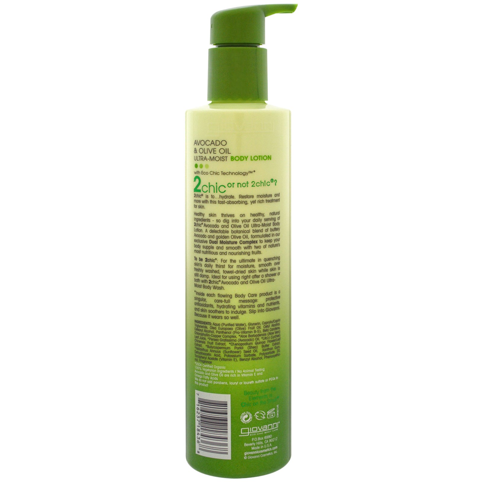 Healthy skin thrives on healthy, natural ingredients – so dig into your daily serving of 2chic Avocado and Olive Oil Ultra-Moist Body Lotion. A delectable botanical blend of buttery Avocado and golden Olive Oil, formulated in our exclusive Dual Moisture Complex to keep your body supple and smooth with two of nature’s most nutritious and nourishing fruits.