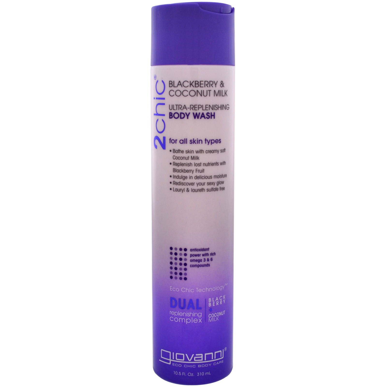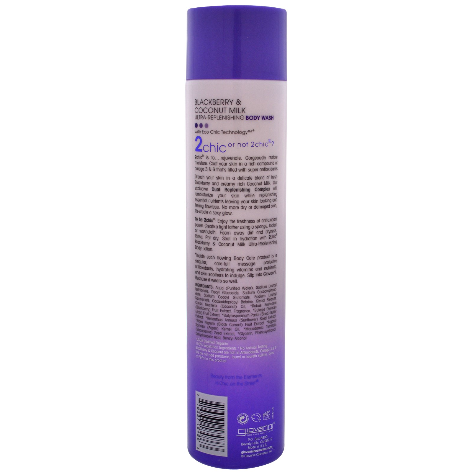 To be 2chic: Enjoy the freshness of antioxidant power. Create a light lather using a sponge, loofah or washcloth. Foam away dirt and dryness. Rinse. Pat dry. Seal in hydration with 2chic Blackberry & Coconut Milk Ultra-Replenishing Body Lotion.