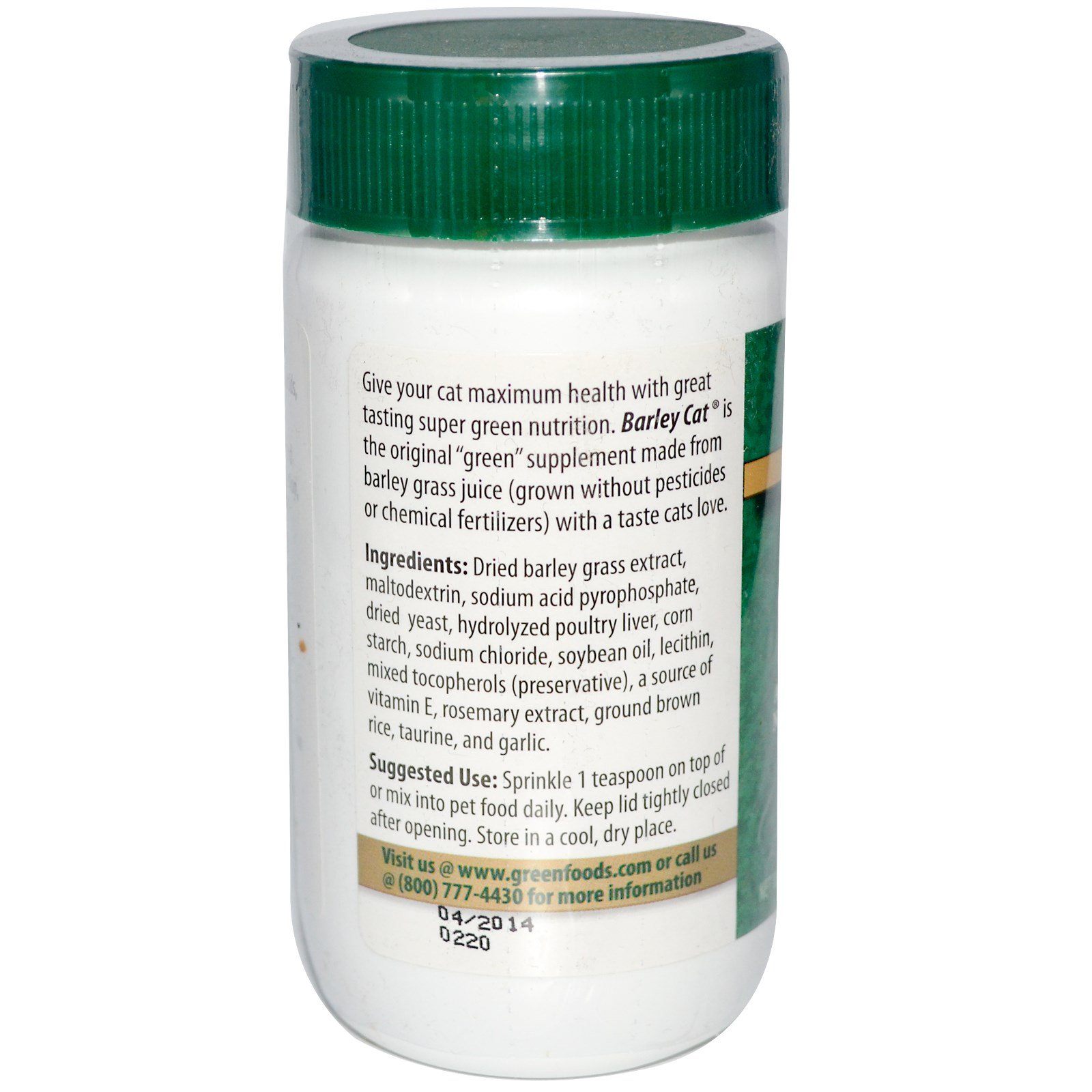 Give your cat maximum health with great tasting super green nutrition. Barley Cat is the original “green” supplement made from Barley grass juice (grown without pesticides or chemical fertilizers) with a taste cats love.