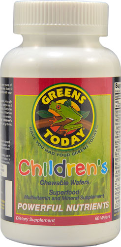 Greens Today Children’s Formula is a delicious, naturally flavored Superfood Multivitamin and Mineral supplement perfect for supplying targeted nutrition for Kids Everyday Health. This product includes an exclusive blend of Vitamins and Minerals Superfoods and Herbs in a convenient, easy-to-take wafer form.