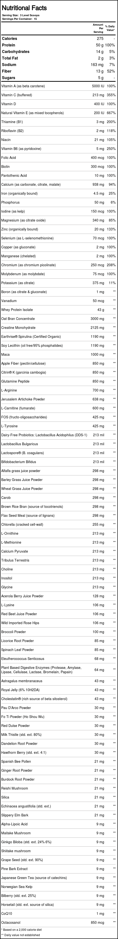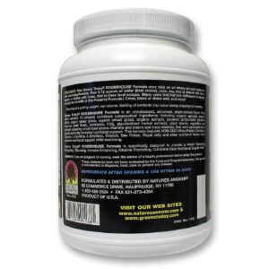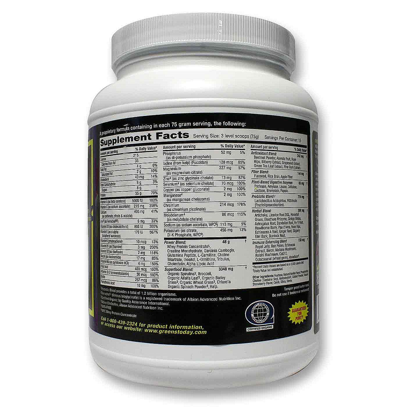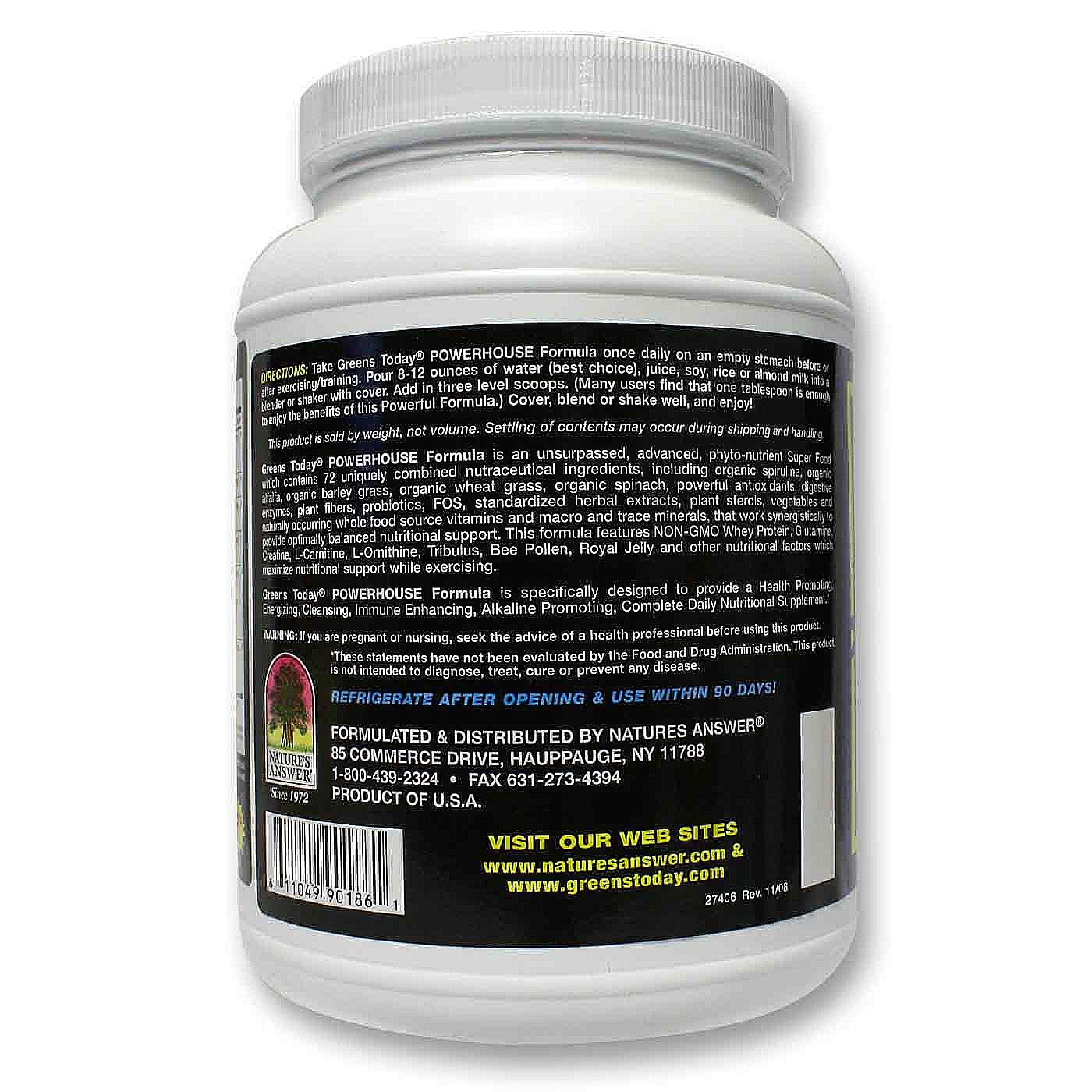 Plus Whey Protein, Calcium Pyruvate, Glutamine Peptide, Creatine Monohydrate, L-Carnitine, Tribulus Terrestris Greens Today Powerhouse Formula is an Unsurpassed, Advanced, Bioactive, Phyto-Nutrient Rich Super Protein, Superfood Formula which contains over 72 of the latest nutraceutical ingredients ever to be combined together in one amazing fitness formula!