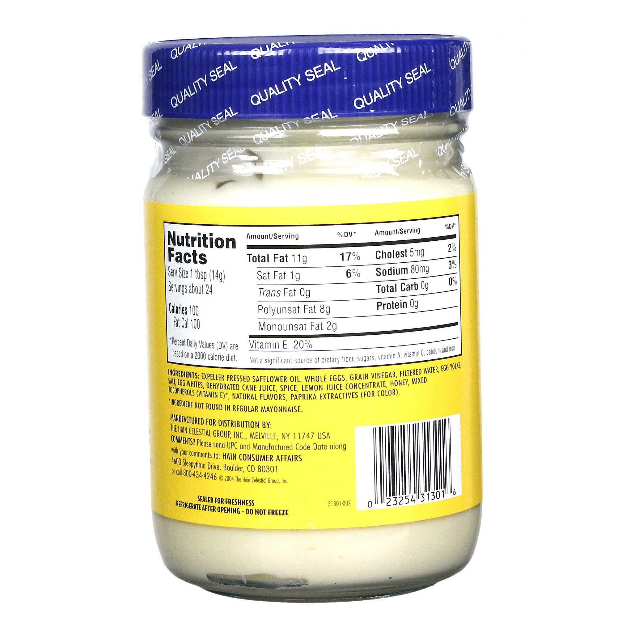 If you love the taste of mayo but can’t stand all the high-calorie, fat-filled options at the supermarket, try the creamy, flavorful blend of Hain’s Safflower Mayonnaise! Free of artificial colors, flavors and preservatives, Safflower Mayonnaise contains only all-natural ingredients and is as delicious as it’s nutritious. Spread it over bread for your favorite sandwiches or mix it into your favorite chicken, tuna, potato, macaroni or egg salad.
