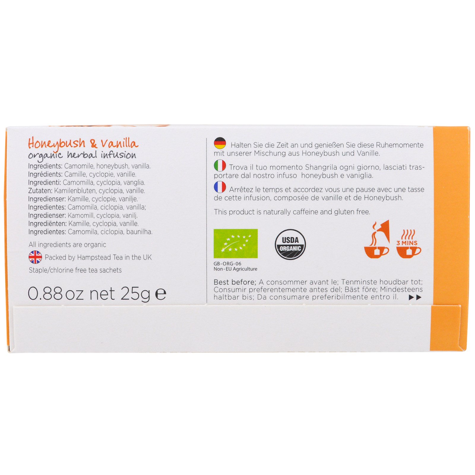 Hampstead Tea, Honeybush e Baunilha, Chá Orgânico de Ervas, 20 Sachês, 0.88 oz (25 g)