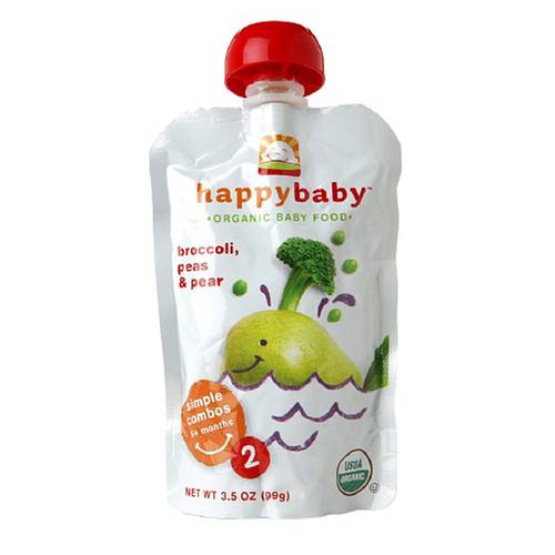 Happy Bebê Orgânico Bebê Food Stage 2 Simples Combos brócolis, ervilhas e Pear 16-3,5 Bolsas oz
