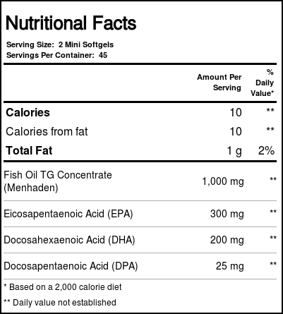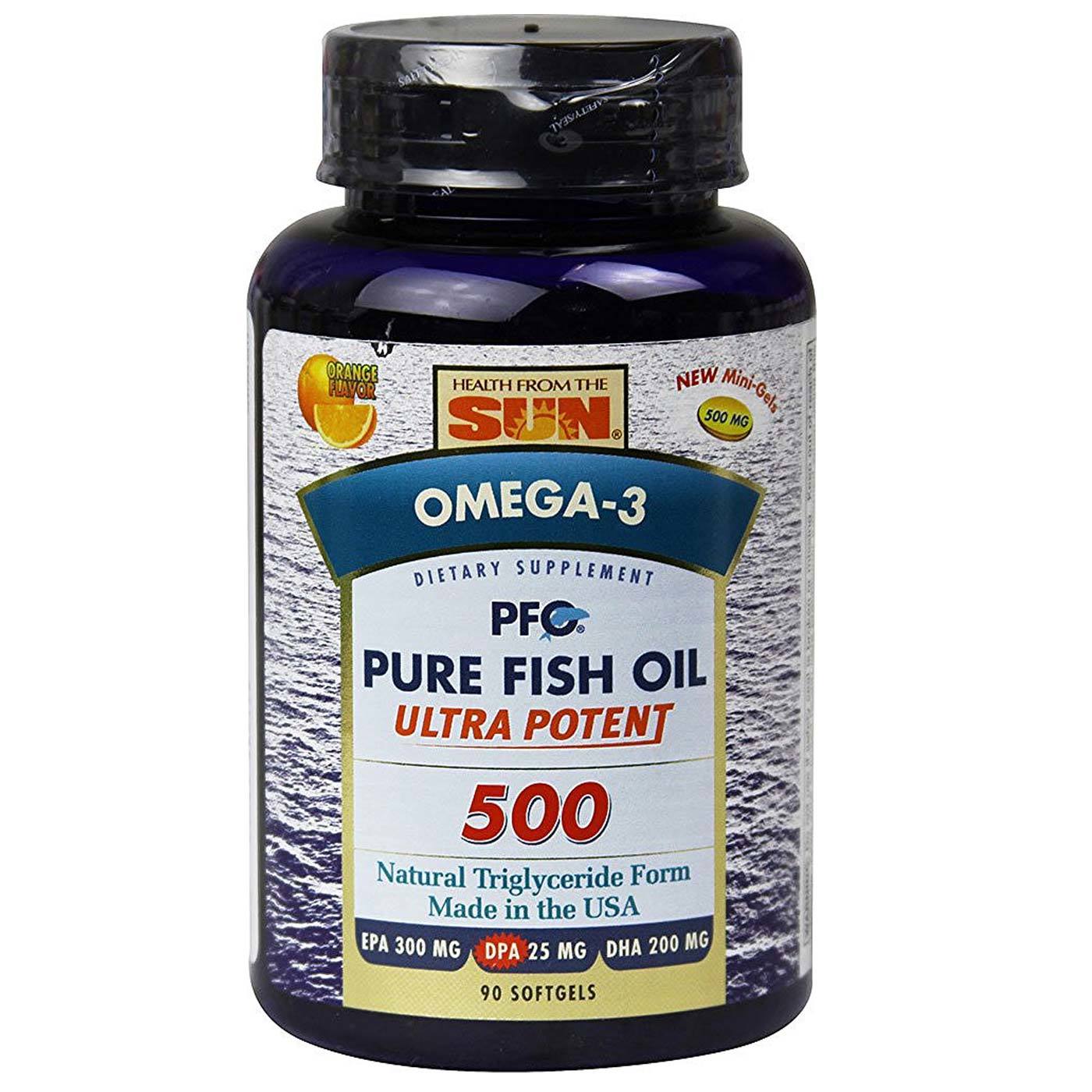 PFO Pure Fish Oil Ultra Potent Mini contains pure, natural triglyceride menhaden oil, meaning each softgel is about 65 percent heart-healthy omega-3 fatty acids. That’s double the concentration of the standard fish oil softgel. This Health From the Sun fish oil also contains 25 mg of DPA, an important omega-3 that supports cognitive function, especially memory.
