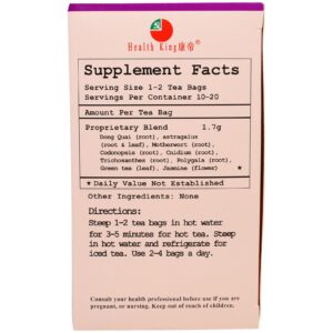 An excellent drink flavored with jasmine flower, it is made of the famous wild Chinese Dong Quai (Chinese Angelica) grown on the pollution-free high plateau of northwest China, with other precious herbs. Traditional Chinese herbalism considers it a blood builder and blood circulation promoter to support normal gynecological functions, and to support female hormone balance.