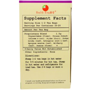 Health King, Chá de ervas para proteção ao colesterol, descafeinado, 20 sacos de chá, 1,05 oz (30 g)