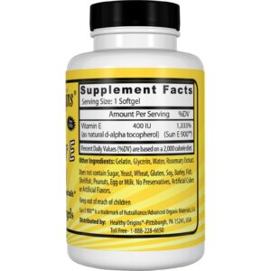 Healthy Origins, Girassol E, 400 IU, 120 Cápsulas Moles