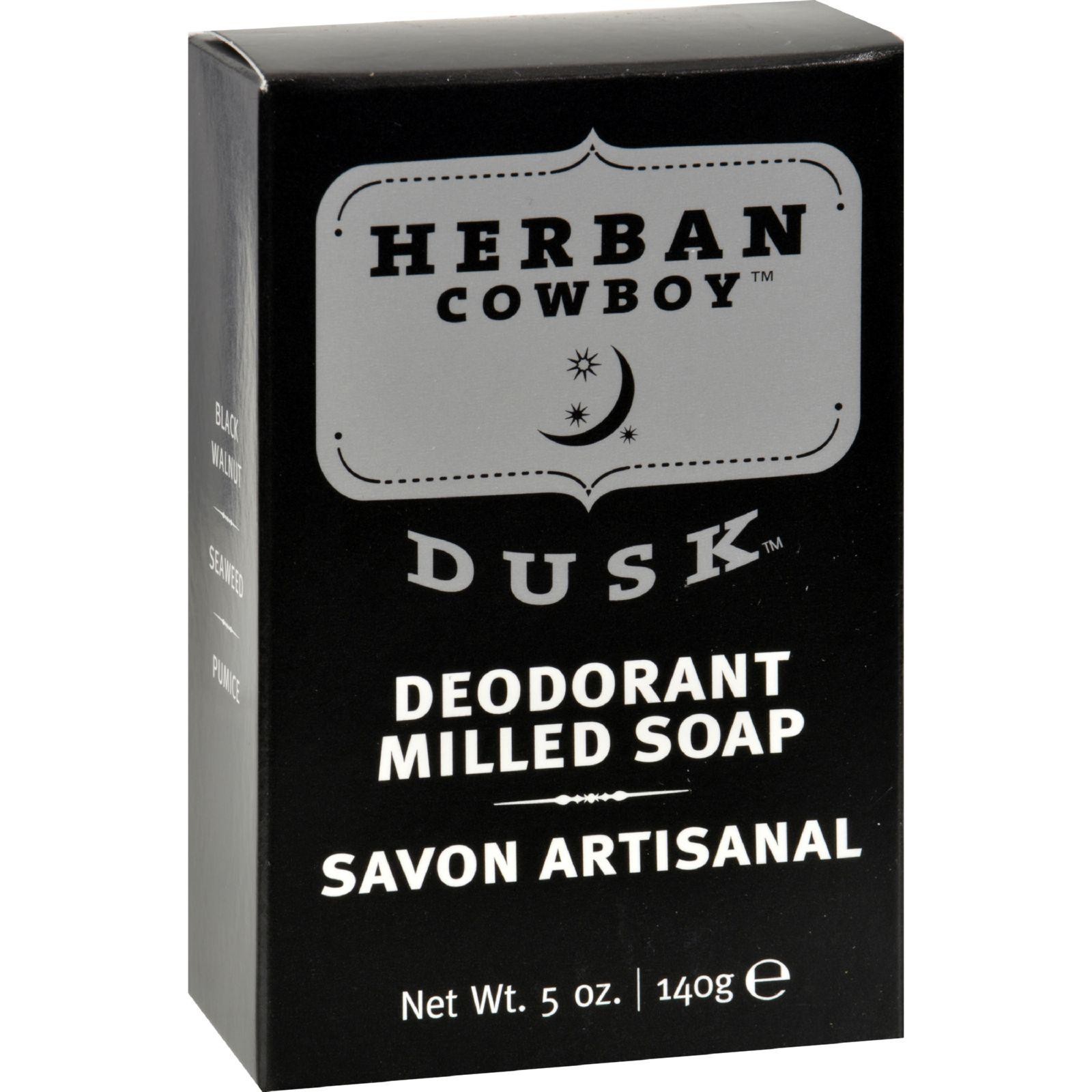 Herban Cowboy Milled Bar Soap Dusk Description: Skin conditioning Seaweed, deep cleaning Pumice, and deodorizing Black Walnut in an organic vegetable oil base with our signature Dusk scent. Free of Dyes and Harsh Synthetics. Soy Ink Print on Biodegradable.Recyclable Packaging. Free Of Animal products, dyes, and harsh synthetics. Disclaimer These statements have not been evaluated by the FDA. These products are not intended to diagnose, treat, cure, or prevent any disease.